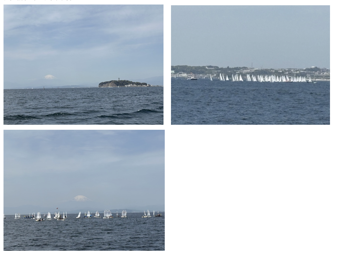 ⛵江の島や遠くに富士山を背景にして、ヨットレースが繰り広げられました。波も穏やかで初夏を思わせる 天気と清々しい海風に吹かれながら、船上からレース観戦を堪能しました。